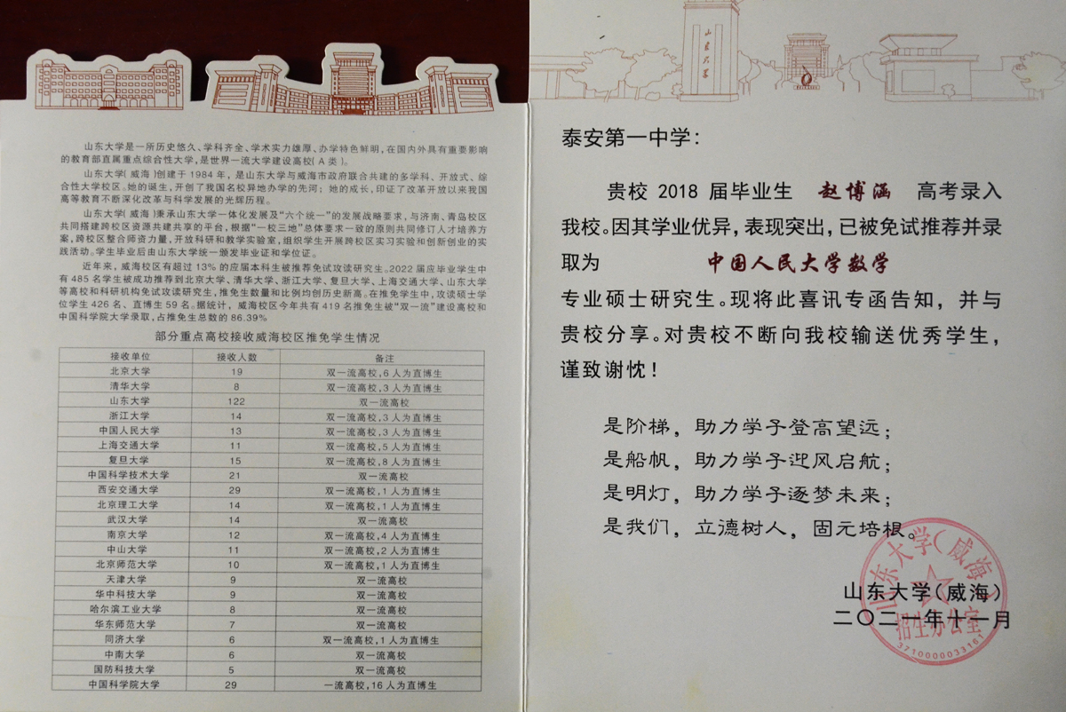 泰安一中2024年特色高中及中科大少年班自主招生综