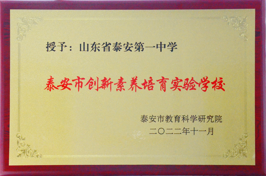 热烈祝贺我校获得“泰安市创新素养培育实验学校”
