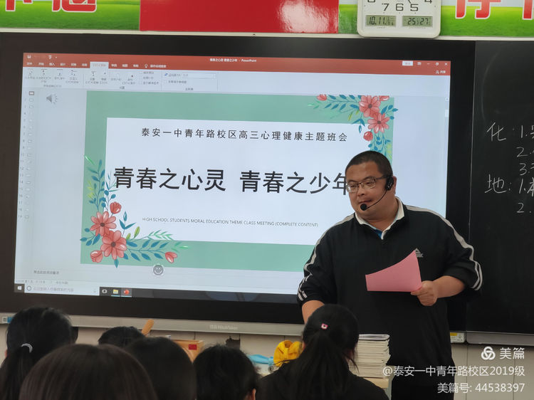 《温暖青春之心灵,拥抱青春之少年》 ——泰安一中2019级召开心理健康教育班会